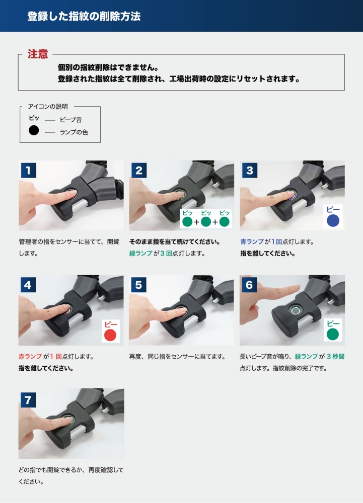 登録指紋の削除方法